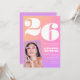 Invitaciones de cumpleaños número 26 rosadas para ella con gradiente de foto retro