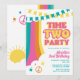 ¡Celebra el segundo cumpleaños de tu pequeño con esta invitación de diseño retro y colores arcoíris! Con una paleta de colores brillantes y divertidos, esta invitación es perfecta para la celebración especial de cumpleaños de cualquier niño de dos años. El diseño inspirado en la vintage seguramente será un éxito tanto con adultos como con niños. Con el equilibrio perfecto entre diversión juvenil y estilo atemporal, esta invitación marcará el tono para una fiesta inolvidable.