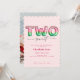 Invitación de cumpleaños número 2 con globo de sandía rosa