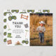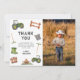 Esta invitación moderna cuenta con ilustraciones de tractor y granja en acuarela y fuentes de estilo de construcción desgastadas.