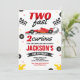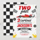 Acelera los motores para una celebración épica con esta invitación de cumpleaños número dos de coche de carreras "Two Fast 2 Curious". Con una estética de carreras moderna y elegante y una tipografía en negrita, es la manera perfecta de marcar el ritmo para el gran día de tu pequeño. Este diseño de alto octanaje es totalmente personalizable, lo que te permite agregar fácilmente los detalles de tu fiesta para un aspecto profesional y listo para la pista que tus invitados amarán.