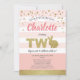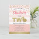 Invitación de fiesta temática de conejito lindo rosa y dorado para el segundo cumpleaños de la bebé.
