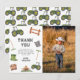 Esta invitación moderna presenta ilustraciones de tractor acuarela y granja y fuentes de estilo de construcción desgastadas.