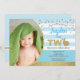 Invitación de cumpleaños para niño de 2 años con tema de conejo lindo en azul y dorado.