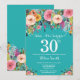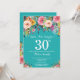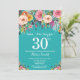 Verde azulada invitación de cumpleaños número 30 para mujeres. Flor floral acuarela. Fondo Verde azulado Aqua Turquesa. Rosa, Amarillo, Naranja, Flor Púrpura. Cumpleaños de adultos. 13. 15. 16. 18. 20. 21. 30. 40. 50. 60. 70. 80. 90. 100. Cualquier edad.