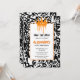Comience la celebración con una impresionante obra de arte urbano que les dice a los invitados la fecha de inmediato. La parte frontal presenta un denso campo de grafitis de línea negra sobre un lienzo blanco crujiente, coronado por una corona naranja de estilo goteo en la parte superior. Debajo, un amplio rectángulo blanco delineado en un fino borde naranja contiene todos los detalles de la fiesta, convirtiendo esta invitación de cumpleaños "save the date" en un anuncio elegante que se siente fresco para cualquier grupo de edad. 🎉✨