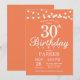 Invitación de cumpleaños número 30 con luces de cuerda. Fondo de coral. Cumpleaños elegante moderno para mujer, dama, señora. 13 15 16 18 20 21 30 40 50 60 70 80 90 100, cualquier edad. Para una mayor personalización, haga clic en el botón "Personalizar" y use nuestra herramienta de diseño para modificar esta plantilla.