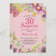 Invitación de cumpleaños número 30 de Surprise Floral. Floral acuarela, fondo rosado. 16.º 18.21.30.40.50.60.70.80.90.100. Cualquier edad. Para una mayor personalización, haga clic en el botón "Personalizar" y utilice nuestra herramienta de diseño para modificar esta plantilla.