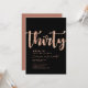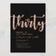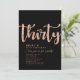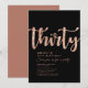 Invitación de cumpleaños número 30 personalizada simple en negro y dorado rosa con tipografía moderna y elegante. Personaliza con nombre, edad y detalles de la fiesta.