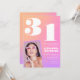 Invitaciones de cumpleaños número 31 rosadas para ella con gradiente de foto retro