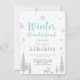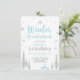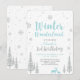Celebre un día especial para su ser querido con esta linda invitación de cumpleaños de Bosque de invierno. Este diseño presenta gráficos de un ciervo y copos de nieve con un tema de color azul bebé y brillo plateado. Puede agregar cualquier color de fondo.