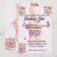 Celebra el día especial de tu pequeña bailarina con esta Invitación de Cumpleaños de Bailarina. Con un diseño elegante de bailarina con toques suaves de rosa, blanco y dorado, esta invitación establece el tono perfecto para una encantadora celebración con tema de ballet. Ideal para primeros cumpleaños, combina elegancia y dulzura, lo que la convierte en un hermoso recuerdo para familiares y amigos. Personalízala con el nombre de tu hijo, detalles del evento e información de la fiesta para un toque verdaderamente único.