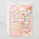 Celebra el día especial de tus pequeños con esta invitación de cumpleaños retro hippie que presenta un fondo de durazno, margaritas, arcoíris, mariposas y una camioneta flower-power. Perfecta para un tema "Joven, Salvaje y Tres", este diseño colorido trae paz, amor y diversión al cumpleaños de tu hijo. Personaliza con tus detalles y establece el tono para una celebración genial que los invitados recordarán. Ideal para fiestas de cumpleaños de niños con un ambiente retro, boho o de los años 60.