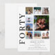 ¡Celebra los grandes 4-0 con estilo! Haz que sea un cumpleaños inolvidable con una invitación inolvidable. Aquí está la forma perfecta de invitar a tus amigos y familiares más cercanos a tu fiesta de cumpleaños número 40 - una moderna invitación de cumpleaños número cuarenta con 9 de tus fotos favoritas, con "cuarenta" escrito en negrita. ¡Marca tu gran hito en la vida y haz que sea una celebración para recordar!