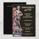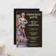 Esta elegante invitación para cumpleaños número 40 presenta un dramático fondo negro con tipografía dorada rica y luminosa que parece ligeramente elevada, creando un efecto metálico refinado. El diseño está estructurado verticalmente, con el nombre y la edad colocados de manera prominente en la parte superior en letras clásicas y negritas que llaman la atención de inmediato.