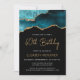 Esta elegante invitación de cumpleaños número 40 presenta una imagen de acuarela de una geoda de ágata en tonos de azul verde con resaltes de brillo dorado falso. Las palabras "40 cumpleaños" aparecen en escritura moderna a mano con color dorado. Personalízala con el nombre del homenajeado en texto dorado y los detalles en blanco sobre fondo negro. Un diseño de ágata verde azulado y dorado coincidente aparece en el reverso.