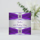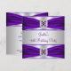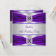 Elegante invitación de cumpleaños número cuarenta de mujer con cinta de satén púrpura y diamantes.