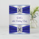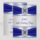 Elegante invitación de cumpleaños número cuarenta para mujer con cinta de zafiro azul cobalto oscuro y diamantes.