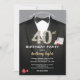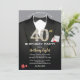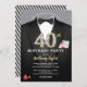 Todos los textos son editables excepto el "40". Puedes personalizarlo para decir Fiesta de Cumpleaños / Celebración de Cumpleaños, etc. Trato formal negro y blanco y corbata con cartas de juego y dados.