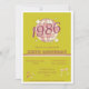 Prepárate para bailar con esta invitación de cumpleaños al estilo retro vintage! Con un elegante texto "1986" en blanco groovy sobre un fondo verde claro retro fresco, acentuado con tonos suaves de rosa claro, esta invitación establece el ambiente perfecto para una fiesta temática de discoteca. Perfecta para cualquiera que nació en 1986 o celebre un cumpleaños inspirado en el vintage, esta invitación combina la nostalgia con un toque divertido para emocionar a tus invitados y bailar toda la noche bajo la bola de discoteca.