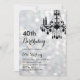 Una lujosa lámpara de araña sobre un fondo de luces plateadas acentúa esta invitación de cumpleaños.