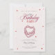 Esta invitación de cumpleaños número 40 de estilo retro muestra un pastel de corazón vintage estilizado con abundantes decoraciones, lazos y cerezas, sobre un fondo de papel texturizado. Los tonos suaves de rosa, rojo y burgundy dan a este diseño un toque moderno. Personaliza con los detalles de tu fiesta para una invitación de cumpleaños número 40 que marca el tono para un evento hermoso (y bastante genial).