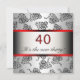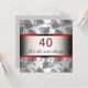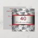 Divertida invitación elegante de cumpleaños número 40 para mujer con damasco negro, plateado y rojo. Personalice y personalice la parte trasera con su elección de estilo de letra y color de letra, y color de fondo del reverso.