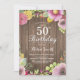 Invitación a los 50 años de la Fiesta Rusa. Acuarela Floral, rosa, fondo rústico de madera.