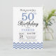 Invitación de cumpleaños número 50 con Blue Chevron.Blanco y negro. Cumpleaños de adultos. Invitación a cumpleaños de hombre o mujer.
