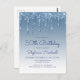 Esta tarjeta postal de invitación para cumpleaños número 50 de moda presenta un borde de goteo brillante de lentejuelas azules y fondo ombre. Las palabras "Cumpleaños número 50" y el nombre del invitado de honor aparecen en una escritura informal de letra manuscrita azul, con el resto del texto personalizable en fuente sans serif azul. (NOTA: Los sobres no se incluyen automáticamente con esta invitación económica. Para agregar sobres a su pedido, utilice el menú desplegable "Sobres").