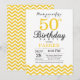 Invitación de cumpleaños número 50 con Chevron Amarillo. Negro y Blanco. Cumpleaños de adulto. Invitación de cumpleaños para hombre o mujer. Para una mayor personalización, haga clic en el botón "Personalizar" y utilice nuestra herramienta de diseño para modificar esta plantilla.