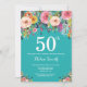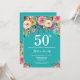 Invitación de cumpleaños número 50 Floral Turquesa