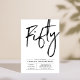 Celebra tu día especial con esta sencilla y elegante invitación de cumpleaños número 50. Este diseño presenta un "Cincuenta" con tipografía de pincel y un diseño limpio en combinación de colores negro y blanco. Más diseños disponibles en mi tienda BaraBomDesign.