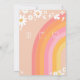 ¡Celebra el hito de tu hijo con esta invitación de cumpleaños retro arcoíris! Con un vibrante diseño groovy con signos de paz, flores sonrientes, mariposas y acentos caprichosos, esta tarjeta divertida establece el tono perfecto para una fiesta llena de diversión. Los colores atrevidos y el tema alegre la hacen ideal para una celebración inspirada en hippies, mientras que los detalles personalizables aseguran que se adapte perfectamente a tu evento. Los invitados amarán el ambiente nostálgico y la energía alegre de esta invitación única.