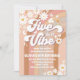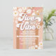 Celebra el día especial de tu hijo con esta invitación de cumpleaños floral retro genial. Con rayas onduladas juguetonas en rosa, melocotón y marrón, junto con margaritas, corazones, mariposas y signos de paz, este diseño captura el espíritu divertido de los años 70. Perfecto para fiestas infantiles, combina la nostalgia de la vibra flower-power con un encanto moderno para crear un recuerdo que los invitados adorarán. Personaliza con los detalles de tu fiesta y establece el tono para una celebración alegre llena de paz, amor y diversión.