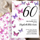 Esta bonito y caprichosa invitación de cumpleaños número 60 es perfecta para un buen fiesta y le dará un tono divertido y festivo. Este diseño presenta mariposas rosas y púrpura, y es una buena elección femenina para un evento especial para celebrar un cumpleaños histórico. Personalizar para tu año de cumpleaños, y busca "60" en mi tienda para ver diseños coordinados.