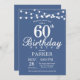 Invitación de cumpleaños número 60 con String Lights. Fondo Azul. Cumpleaños de hombres o mujeres. 13. 15. 16. 18. 20. 21. 30. 40. 50. 60. 70. 80. 90. 100. Cualquier edad.