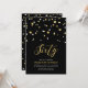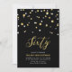 Celebra tu día especial con esta invitación minimalista para una fiesta de cumpleaños número 60. Este diseño presenta un elegante guión de letra "Sesenta" con confeti en forma de hexágono y una combinación de colores negro y dorado. Más diseños disponibles en mi tienda BaraBomDesign.