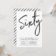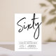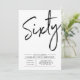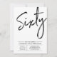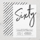 Celebra tu día especial con esta sencilla y elegante invitación de cumpleaños número 60. Este diseño presenta un "Sesenta" con letra de pincel en un diseño limpio en combinación de colores negro y blanco. Más diseños disponibles en mi tienda BaraBomDesign.