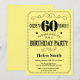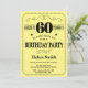 Tipografía negra y amarilla invitada a los 60 años. Fondo negro y amarillo. Cumpleaños de adultos. Cumpleaños de hombres o mujeres. Invite a un niño o Chica Lady Teen Teenage Bday. 13a 15a 16a 18a 20a 30a 40a 50a 60a 70a 80a 90a 100a. Cualquier edad.