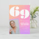 Invitaciones de cumpleaños número 69 rosadas para ella con gradiente de foto retro