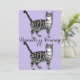 Invitación de cumpleaños número 70 con arte de gato atigrado púrpura. Diseñada a partir de mi pintura original de acuarela.