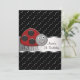 Gran invitación de cumpleaños número 7 para niña con mariquita roja y negra brillante.