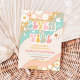 Celebra el día especial de tu hijo con esta genial invitación de cumpleaños retro con rayas onduladas coloridas, margaritas alegres, signos de paz, corazones, estrellas, mariposas y un sol sonriente. Perfecta para una fiesta de cumpleaños número 7, este diseño vibrante captura el espíritu divertido de los 70 con un toque moderno. Los invitados amarán el ambiente juguetón y los detalles caprichosos, lo que la hace ideal para celebraciones con temática retro, hippie o arcoíris. Personaliza fácilmente con los detalles de tu fiesta para crear una invitación única que establece el tono para la paz, el amor y la diversión.