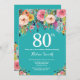Invitación de cumpleaños número 80 con flores azul turquesa para mujeres. Flor acuarela. Fondo azul turquesa. Flor rosa, amarilla, naranja, púrpura. Cumpleaños adulto. 13 15 16 18 20 21 30 40 50 60 70 80 90 100, cualquier edad. Para personalizar aún más, haga clic en el botón "Personalizar" y use nuestra herramienta de diseño para modificar esta plantilla.