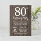 Invitación de cumpleaños número 80 rústica