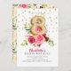 Hermosa floral rosa con un globo de lámina número ocho adornado con confeti dorado. Vea nuestro diseño floral posterior coincidente para un toque extra especial.