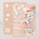 Celebra con estilo con esta invitación de cumpleaños número 8 inspirada en el retro, con un tema hippie de los años 60. Diseñada con tonos melocotón, margaritas blancas, mariposas, lunas crecientes, estrellas y un arcoíris, establece el ambiente perfecto para la paz, el amor y la diversión. La ilustración de la furgoneta con un signo de la paz añade un toque nostálgico, lo que la hace ideal para fiestas de cumpleaños de niños con un tema boho o flower power. Personaliza fácilmente para crear una invitación única que encantará a los invitados.
