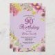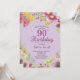 Invitación floral 90º cumpleaños para mujeres. Floral acuarela, fondo morado. Para una mayor personalización, haga clic en el botón "Personalizar" y utilice nuestra herramienta de diseño para modificar esta plantilla.