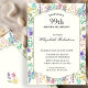 Esta bonita y colorida invitación de cumpleaños número 99 con flores silvestres de acuarela es una forma encantadora de invitar a sus invitados a la fiesta. Este diseño presenta acuarelas pintadas a mano y un diseño de marco formal con detalles de texto que puede personalizar utilizando el editor de texto.